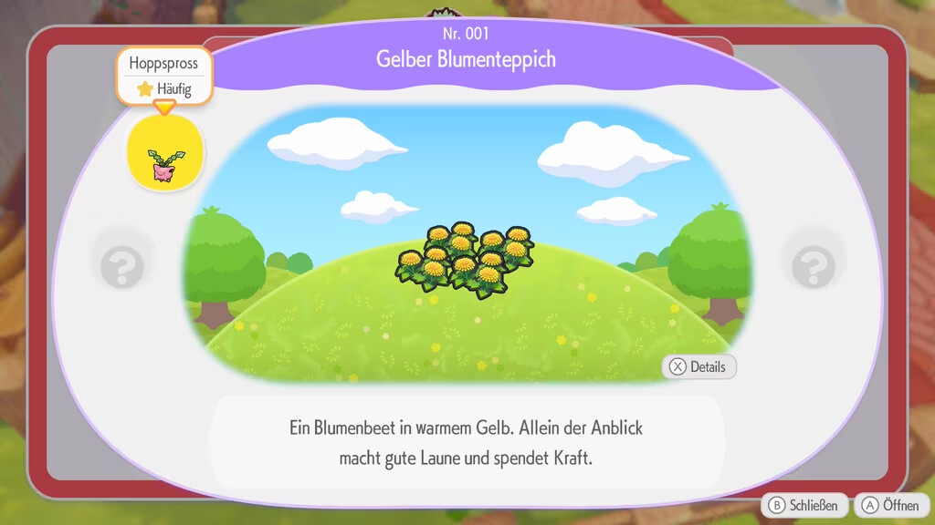 Wollt ihr im „Mehr Flaum für Hoppspross“-Event ein Hubelupf oder Papungha anlocken, benötigt ihr dafür Ruheblumensamen. Diese könnt ihr für fünf Pusteflaum im Pokémon Center bei Hoppspross eintauschen. Jetzt könnt ihr das Habitat „Gelber Blumenteppich“ erschaffen, indem ihr vier Ruheblumen nebeneinander platziert.